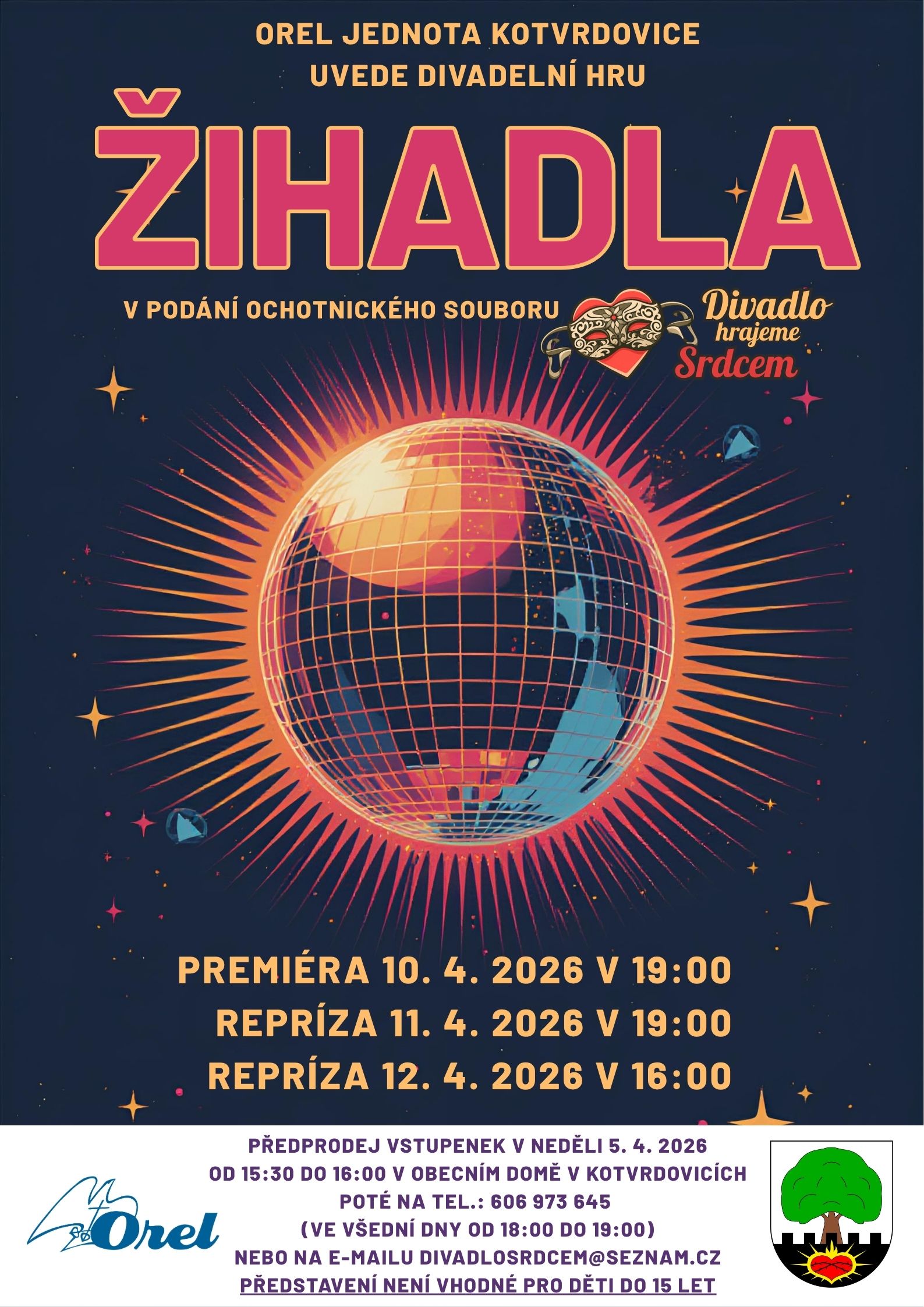 Jednota Orel Kotvrdovice a Divadlo Srdcem vás zve srdečně na divadelní hru Žihadla.