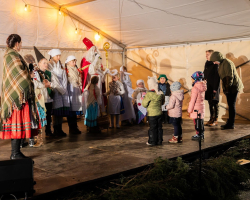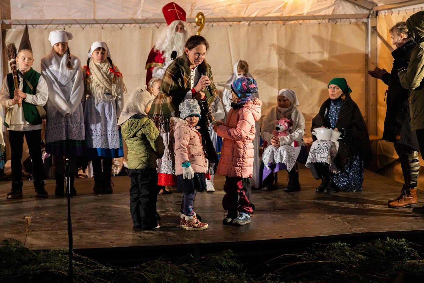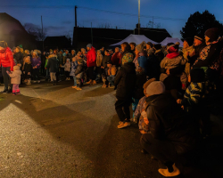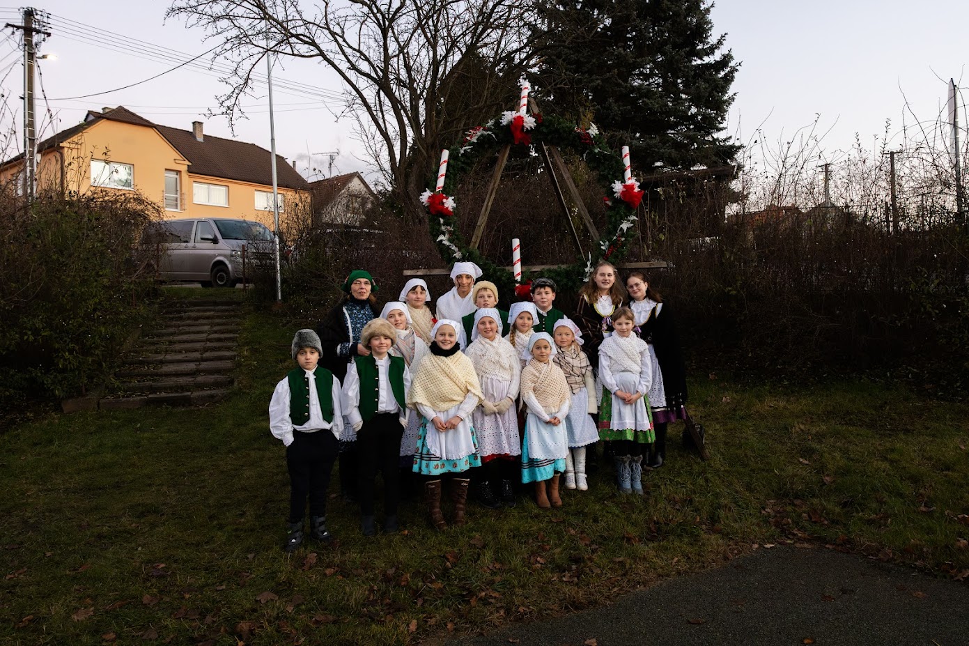 V podvečer první neděle adventní (30. 11. 2024) jsme se postupně začali scházet na vyzdobeném Parketě, kde nás všechny krátce po 16 hod uvítal pan starosta Leoš Kratochvil. Poté předal podium chasičce, která jako první zatančila tanec připomínající první adventní svatou, a to svatou Barboru a zvyk s ní spojený. Lidovou píseň „Byla jsem já na barborku“ nám zazpívala místní schola (z řad chasy a skautů), která nás celým podvečerem skvěle hudebně doprovázela. Během kulturního programu, který chasa na Zahájení adventní doby již od r. 2018 připravuje, jsme mohli vidět další adventní postavy, které z adventního živého obrazu oživili odvážní dobrovolníci z řad publika. Pozdravil nás tak svatý Mikuláš, některé z nás očistila husí peroutkou bílá Lucie, koštětem vyplatil mlsné děti Ambrož, partu kluků jsme doprovodili na roráty a na chvíli se přenesli do doby, kdy babičky draly při dlouhých zimních večerech peří a vnoučata poslouchala jejich vyprávění. Po živém obrazu podium opět patřilo tanečnicím, které nám tancem přiblížily radostné setkání příbuzných svaté Alžběty a Panny Marie očekávající narození jejich děťátek.  Při posledním scénicko-lidovém tanci jsme se dostali do období, kdy se Josef dozvěděl, že jeho snoubenka Marie čeká Božího Syna.