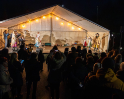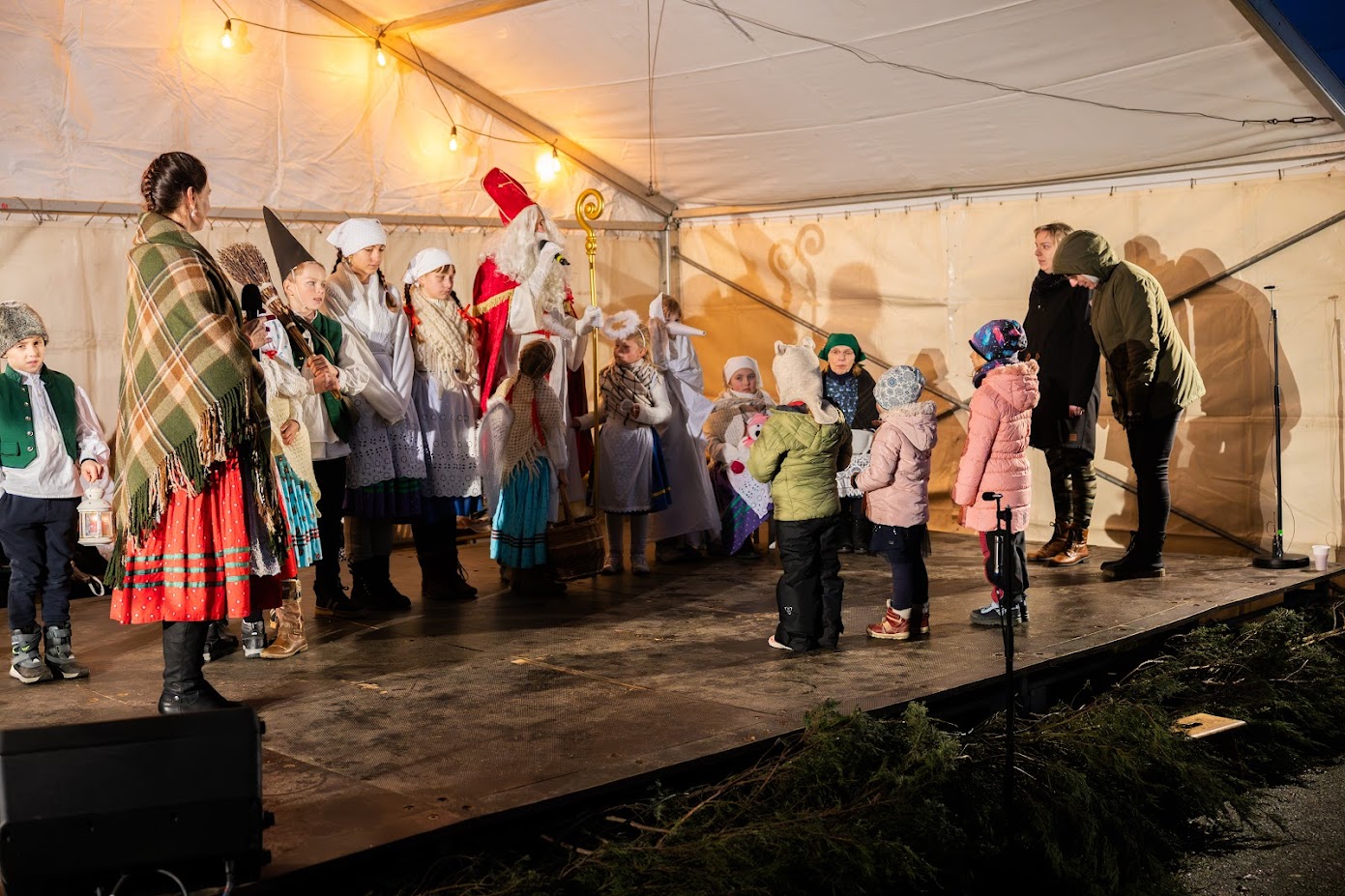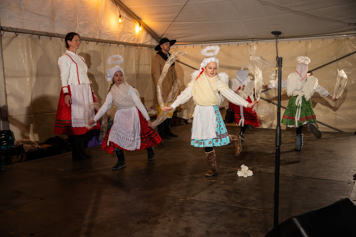V podvečer první neděle adventní (30. 11. 2024) jsme se postupně začali scházet na vyzdobeném Parketě, kde nás všechny krátce po 16 hod uvítal pan starosta Leoš Kratochvil. Poté předal podium chasičce, která jako první zatančila tanec připomínající první adventní svatou, a to svatou Barboru a zvyk s ní spojený. Lidovou píseň „Byla jsem já na barborku“ nám zazpívala místní schola (z řad chasy a skautů), která nás celým podvečerem skvěle hudebně doprovázela. Během kulturního programu, který chasa na Zahájení adventní doby již od r. 2018 připravuje, jsme mohli vidět další adventní postavy, které z adventního živého obrazu oživili odvážní dobrovolníci z řad publika. Pozdravil nás tak svatý Mikuláš, některé z nás očistila husí peroutkou bílá Lucie, koštětem vyplatil mlsné děti Ambrož, partu kluků jsme doprovodili na roráty a na chvíli se přenesli do doby, kdy babičky draly při dlouhých zimních večerech peří a vnoučata poslouchala jejich vyprávění. Po živém obrazu podium opět patřilo tanečnicím, které nám tancem přiblížily radostné setkání příbuzných svaté Alžběty a Panny Marie očekávající narození jejich děťátek.  Při posledním scénicko-lidovém tanci jsme se dostali do období, kdy se Josef dozvěděl, že jeho snoubenka Marie čeká Božího Syna.